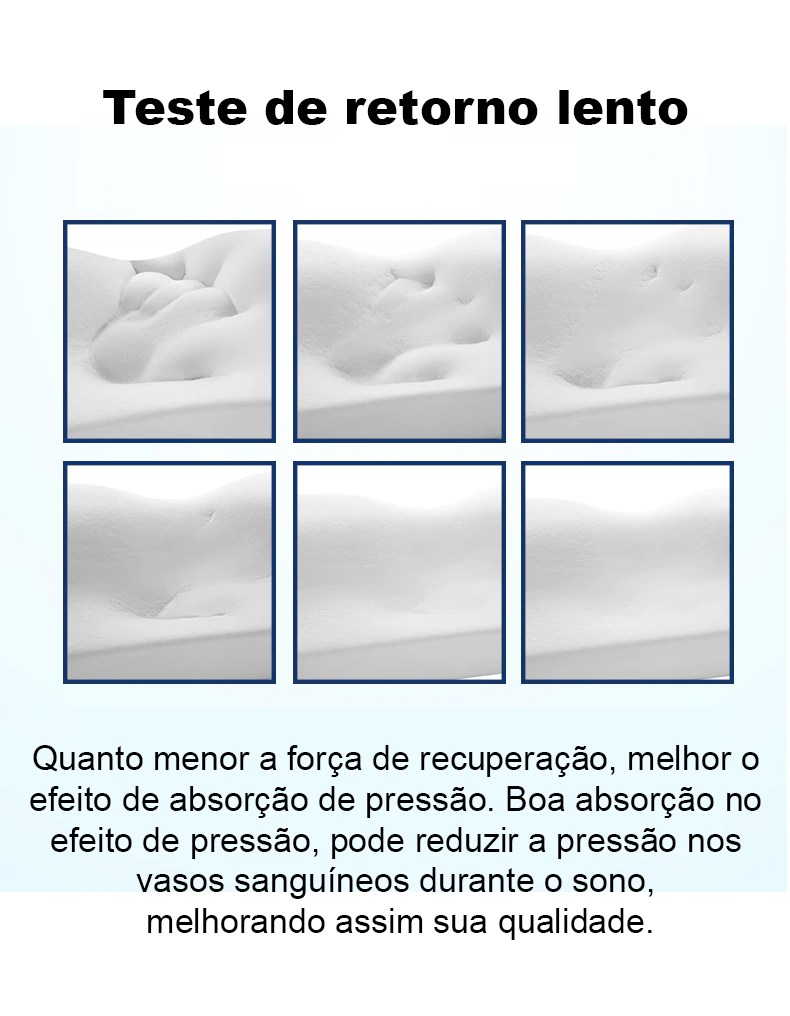 Possui 4 pontos de apoio para manter sua cabeça no centro do travesseiro de forma confortável, o que impede o movimento involuntário durante o sono e mantem a cervical na postura correta e alongada.